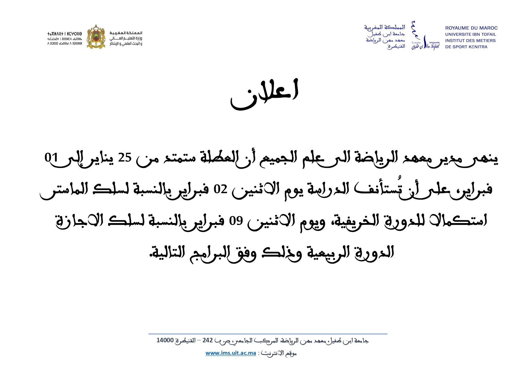 AVIS : Le début des cours pour les étudiants du S3 et S5 , est programmé pour le Lundi 11 septembre 2023.